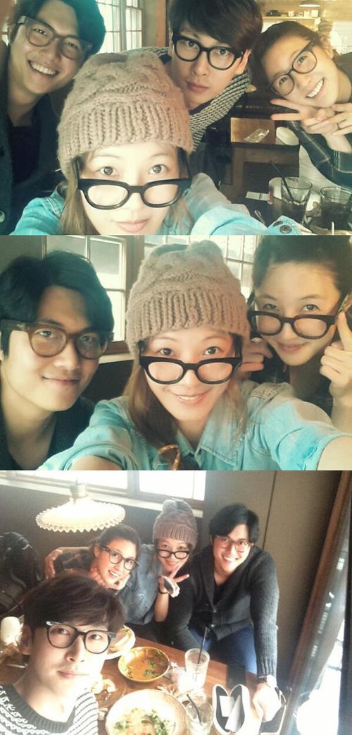 윤소이는 19일 자신의 트위터에 "우리는 네 쌍둥이~ 재희&지호&수경&소이~알럽유", "지호 오빠가 디자인한 안경이에요~색깔만 다른 우리 셋"이라는 글과 함께 사진을 올렸다.