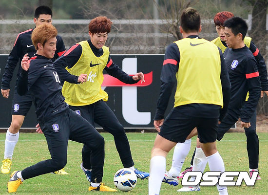 최강희호의 태극 전사들이 카타르와 2014 브라질월드컵 최종예선 5차전을 벌이기 위해 19일 오후 파주 국가대표 트레이닝센터(NFC)에서 소집 둘째날 훈련을 펼쳤다. 이날 훈련에서 대표팀 선수들은 포지션별로 나눠 미니게임을 치르며 호흡을 점검했다.