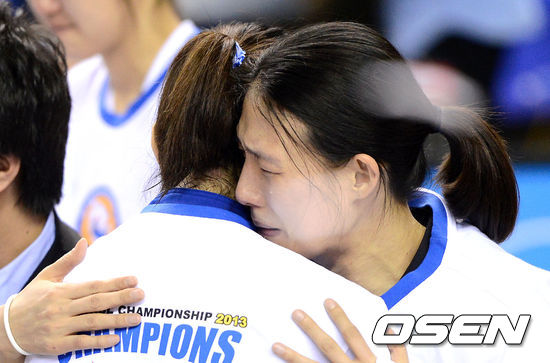 챔피언 전주원 코치,'감격의 눈물'