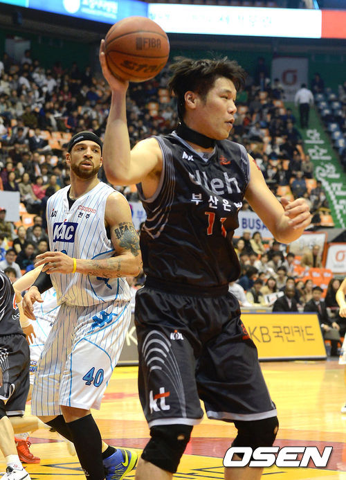 19일 오후 부산 사직실내체육관서 열린 '2012-2013 KB국민카드 남자프로농구' 부산 KT와 전주 KCC의 경기, 2쿼터 KT 서장훈이 리바운드를 성공하고 있다.