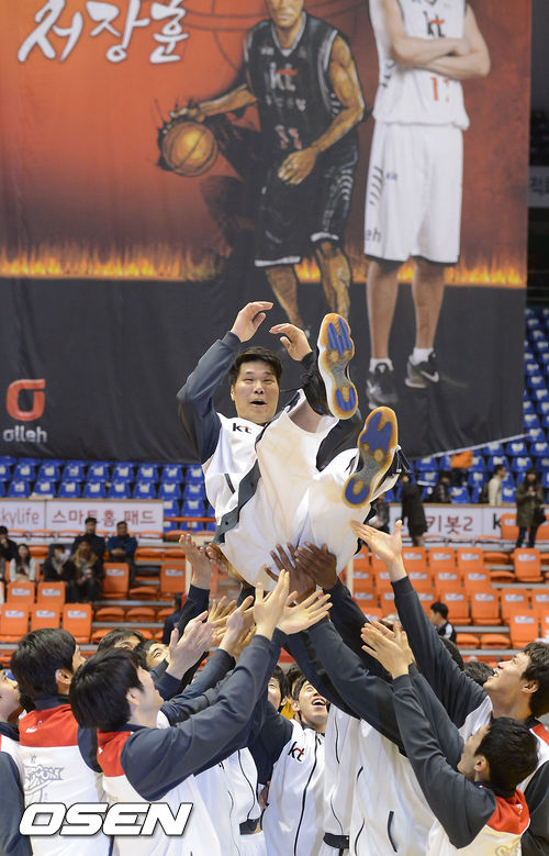 서장훈이 헹가래를 받고 있다./soul1014@osen.co.kr