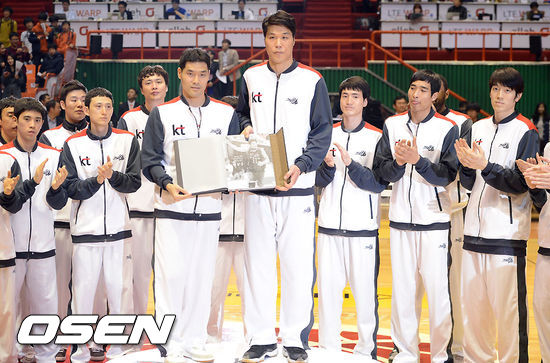 KT는 19일 부산 사직 실내체육관에서 열린 ‘2012-2013 KB국민카드 프로농구’ 전주 KCC와 시즌 최종전에서 84-79로 승리, 유종의 미를 거뒀다. KT는 서장훈이 33득점으로 팀 공격을 주도했고 제스퍼 존슨이 20득점 12리바운드, 윤여권은 11득점을 보탰다. KT는 4쿼터 막판 서장훈의 쐐기 연속 득점으로 KCC의 끈질긴 추격을 저지해 승리를 따냈다.