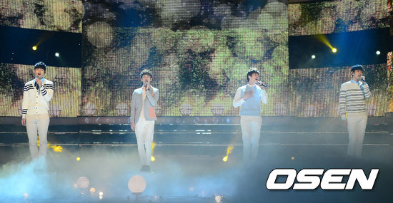 무대 위에서 2AM이 노래 ‘어느 봄날’을 열창을 하고 있다.