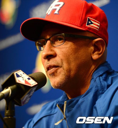 경기 전 열린 기자회견에서 푸에르토리코 에드윈 로드리게스 감독이 취재진의 질문을 듣고 있다./jpnews@osen.co.kr