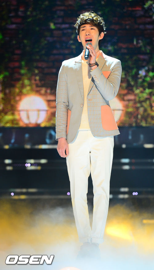 무대 위에서 2AM의 조권이 노래 '어느 봄날'을 열창을 하고 있다.