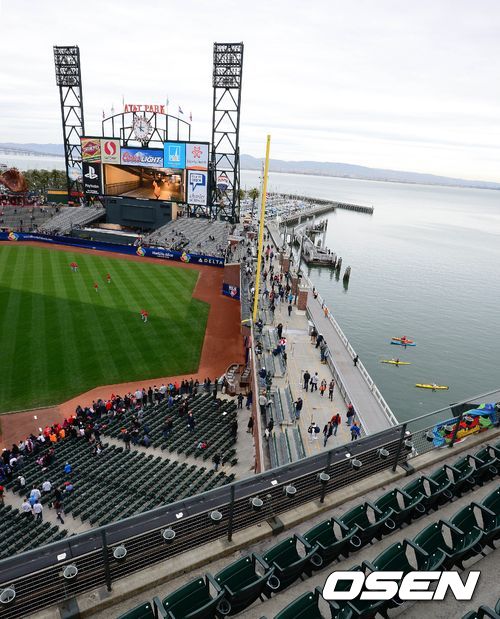 결승전 경기가 벌어지는 AT&T 파크 우익수 쪽이 바닷가에 접해있다. 베리 본즈의 홈런 신기록때는 홈런볼을 잡기 위해 수많은 사람들이 카누와 보트를 타고 기다리는 장사진을 연출했다./jpnews@osen.co.kr