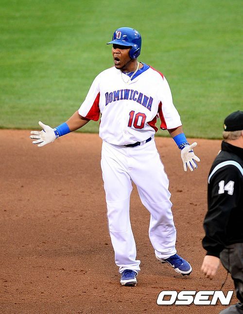 1회말 1사 1,3루 도미니카공화국 에드윈 엔카르나시온이 2타점 2루타를 치고 환호하고 있다./jpnews@osen.co.kr