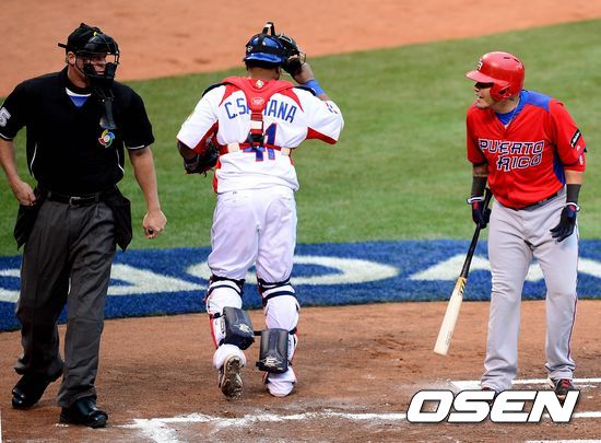 1회초 주심이 삼진을 선언하자 푸에르토리코 몰리나가 주심에 어필하고 있다./jpnews@osen.co.kr