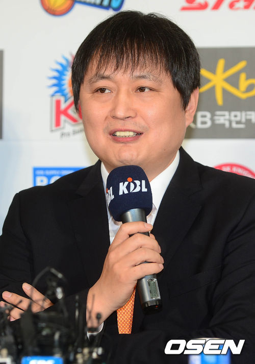 20일 오전 서울 논현동 KBL 센터에서 열린 '2012-2013 KB국민카드 프로농구' 플레이오프 미디어데이에서 인삼공사 이상범 감독이 질의응답 시간을 갖고 있다.