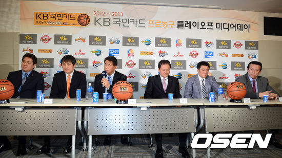20일 오전 서울 논현동 KBL 센터에서 열린 '2012-2013 KB국민카드 프로농구' 플레이오프 미디어데이에서 6개구단 감독들이 질의응답 시간을 갖고 있다.
