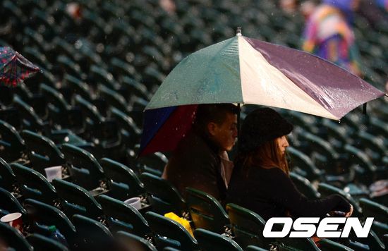 비가 오는 가운데 연인이 경기를 관전하고 있다./jpnews@osen.co.kr