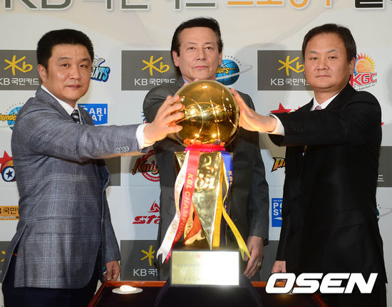 20일 오전 서울 논현동 KBL 센터에서 열린 '2012-2013 KB국민카드 프로농구' 플레이오프 미디어데이에서 유도훈, 김동광, 유재학 감독이 기념촬영을 하고 있다.