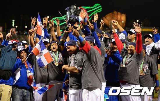 우승컵을 차지한 도미니카 선수들이 환호하고 있다./jpnews@osen.co.kr