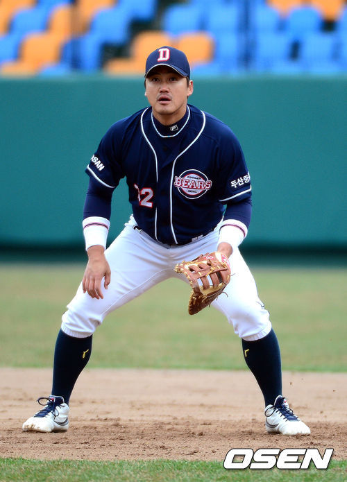 두산 주장 홍성흔(36)이 4년 만에 1루수 미트를 끼고 공식 경기에 나섰다. 홍성흔은 20일 대전구장에서 열린 '2013 한국야쿠르트 세븐프로야구' 한화와 시범경기에 3번타자 1루수로 선발 라인업에 이름을 올렸다. 롯데 시절이었던 지난 2009년 6월28일 대전 한화전 이후 4년만의 1루수 선발 출전이었다.