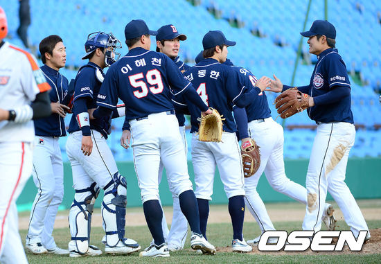 경기 종료 후 승리를 거둔 두산 선수들이 기뻐하고 있다. / youngrae@osen.co.kr