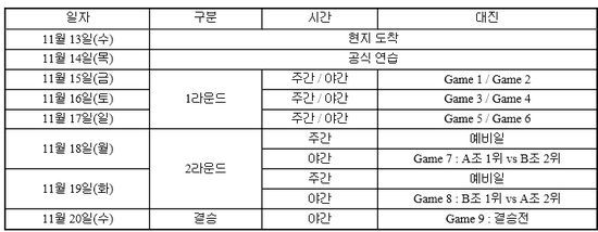 결승전은 11월 20일 야간 경기로 열리며 1라운드에서 우천 순연 경기가 발생할 경우 해당 경기는 18일에 열리고 2라운드는 19일 주간, 야간 2경기로 치러진다. 1라운드가 18일까지도 종료되지 않을 경우 2라운드는 취소되며 각 조 1위 팀이 결승에 진출한다.