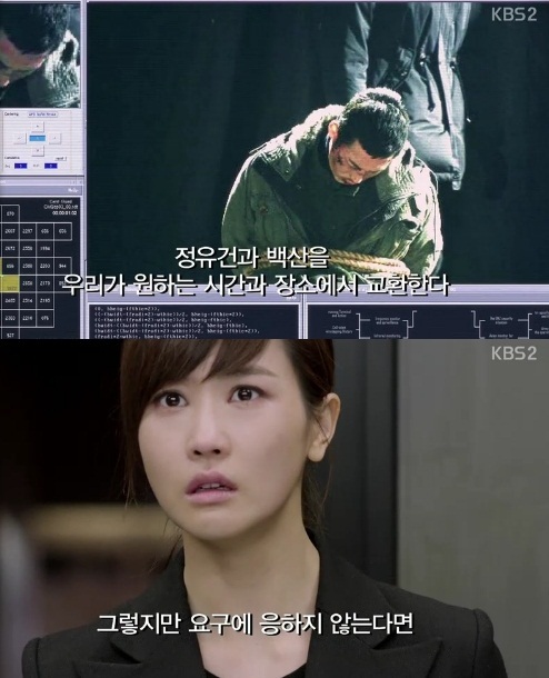 그 시각 아이리스는 유건을 미끼로 한 협상을 제안했다. 아이리스의 레이(데이비드 맥이니스 분)는 백산(김영철 분)과 유건의 맞교환을 요구하며 원하는 답이 없을시 유건을 죽이겠다고 전했다.