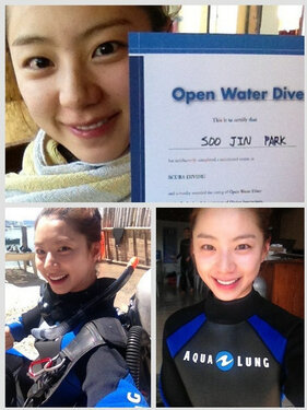 박수진은 21일 자신의 트위터에 "오픈워터다이버 자격증 획득"이라는 글과 함께 인증샷을 올렸다.