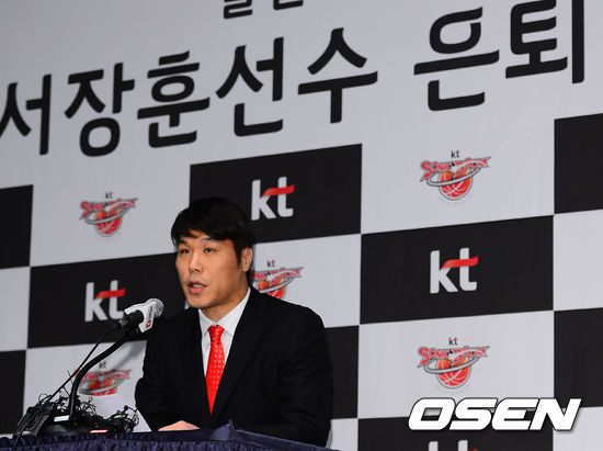 21일 오전 서울 종로구 KT 광화문 올레 스퀘어 1층 드림홀에서 열린 농구선수 서장훈의 은퇴 기자회견에서 은퇴 소감을 밝히고 있다.