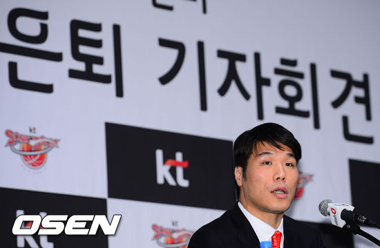 21일 오전 서울 종로구 KT 광화문 올레 스퀘어 1층 드림홀에서 열린 농구선수 서장훈의 은퇴 기자회견에서 서장훈이 취재진의 질문에 답을 하고 있다.