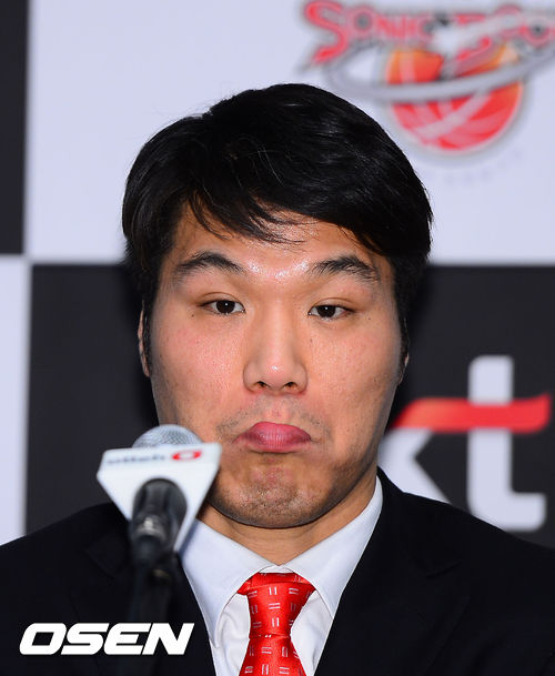 21일 오전 서울 종로구 KT 광화문 올레 스퀘어 1층 드림홀에서 열린 농구선수 서장훈의 은퇴 기자회견에서 서장훈이 아쉬운 표정을 짓고 있다.