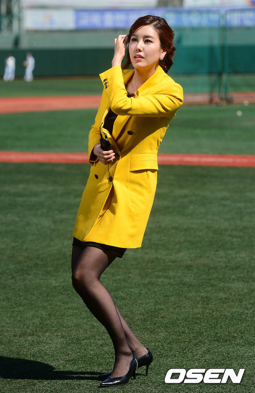 21일 오후 서울 목동구장에서 열리는 '2013 한국야쿠르트 세븐 프로야구' 넥센 히어로즈와 두산 베어스의 시범경기 시작 전 MBC 신입 아나운서 차예린이 촬영 준비를 하고 있다.