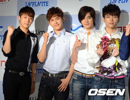 21일 오후 서울 영등포구 여의도 IFC몰 MPUB에서 열린 '인피니트 컴백 기자회견'에서 인피니트가 포토타임을 갖고 있다.