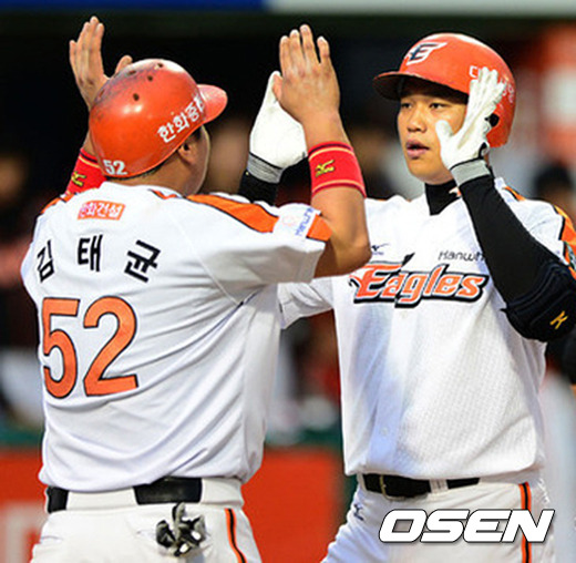 7회에는 김태균이 2사 1루에서 차우찬의 3구째 몸쪽 138km 직구를 잡아당겨 좌측 담장을 넘어가는 비거리 105m 투런 홈런을 터뜨리며 승부에 쐐기를 박았다. 역시 시범경기 2호 홈런. 김태균은 3타수 2안타 2타점, 최진행은 3타수 2안타 3타점으로 공격을 이끌었다.