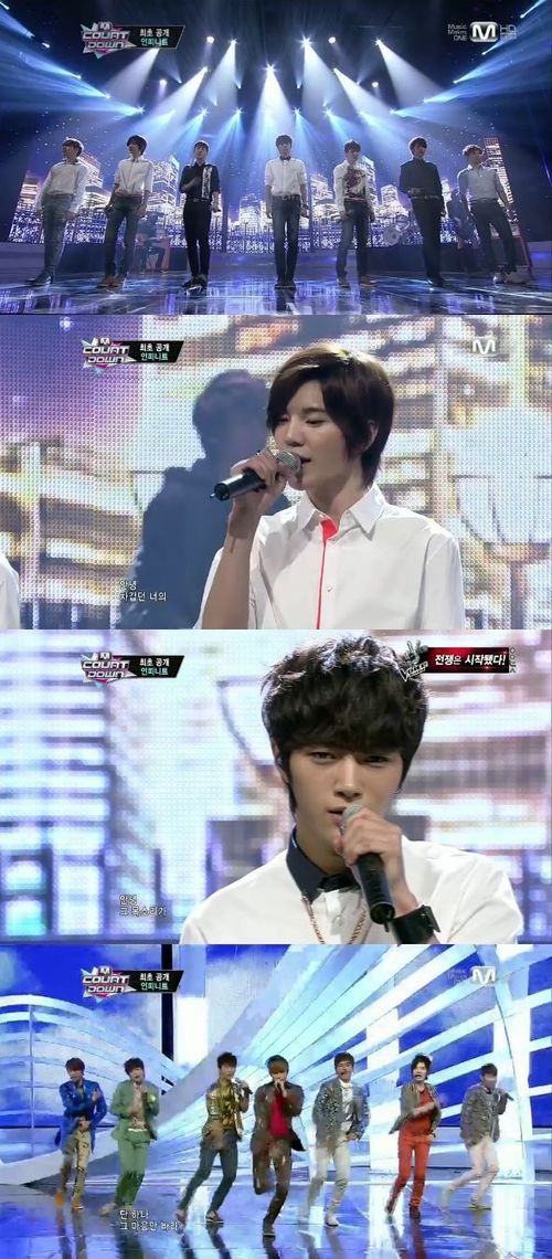 인피니트는 21일 오후 6시 방송된 엠넷 '엠카운트다운'에 출연해 곡 '그리움이 닿는 곳에'와 타이틀 곡 '맨인러브(Man in Love)'를 열창했다.