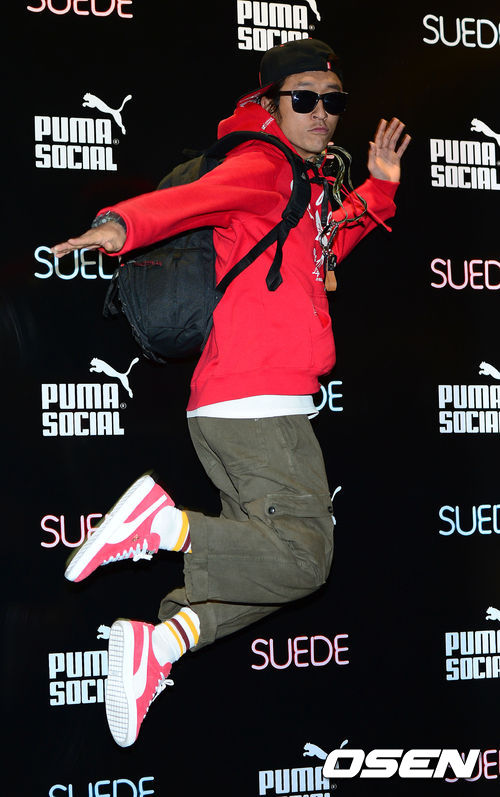 21일 오후 서울 강남구 신사동 클럽 KEU KEU에서 진행된 '푸마 퓨처 스웨이드 런칭파티'에 참석한 빽가가 포토타임을 갖고 있다.