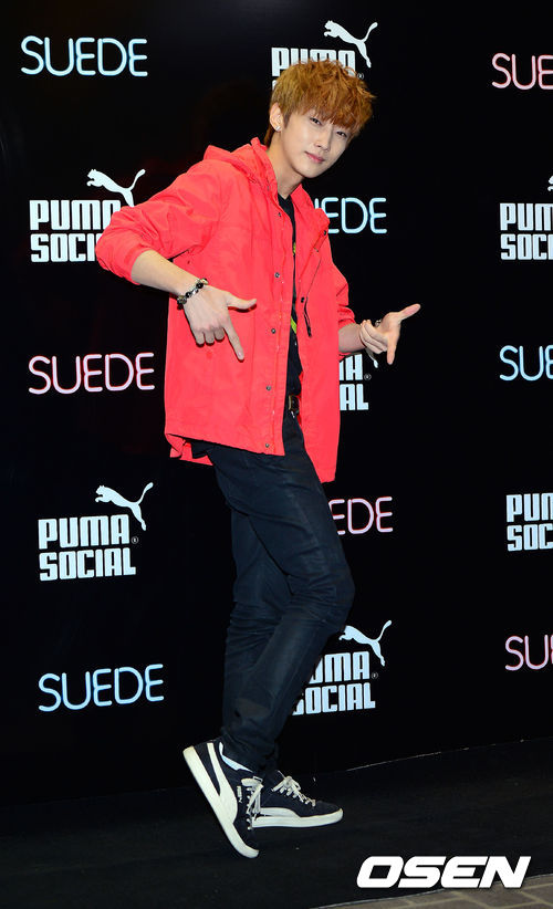 21일 오후 서울 강남구 신사동 클럽 KEU KEU에서 진행된 '푸마 퓨처 스웨이드 런칭파티'에 참석한 B1A4 진영이 포토타임을 갖고 있다.