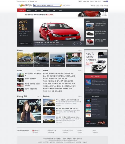 다음커뮤니케이션은 오는 29일부터 4월 7일까지 일산 킨텍스에서 개최되는 ‘2013 서울모터쇼’를 공식 후원하고, 이용자들이 보다 빠르고 쉽게 모터쇼 정보를 얻을 수 있도록 PC와 모바일에 특집페이지를 동시 오픈했다고 밝혔다..