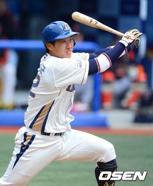 21일 오후 창원시 마산구장에서 열린 '2013 한국야쿠르트 세븐 프로야구' NC 다이노스와 롯데 자이언츠의 시범경기,2회말 1사 2,3루 NC 김태군이 선취 1타점 적시타를 날리고 있다