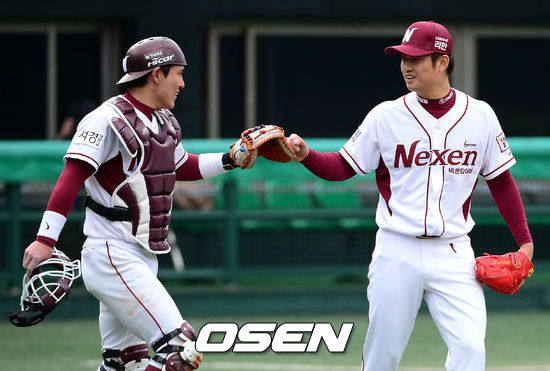 경기 종료 후 승리를 거둔 넥센 손승락과 박동원이 기뻐하고 있다. / youngrae@osen.co.kr