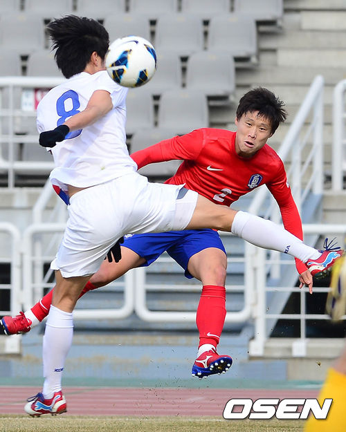 22일 오후 고양종합운동장에서 열린 축구 대표팀 자체 평가전에서 박원재가 골문 앞으로 볼을 올리고 있다.