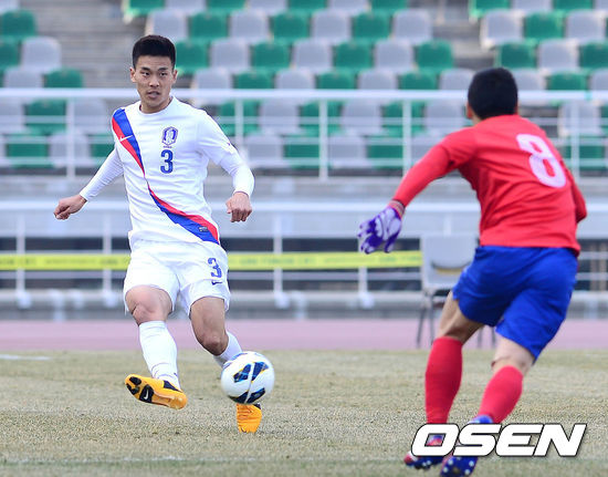 22일 오후 고양종합운동장에서 열린 축구 대표팀 자체 평가전에서 김기희가 패스를 하고 있다.
