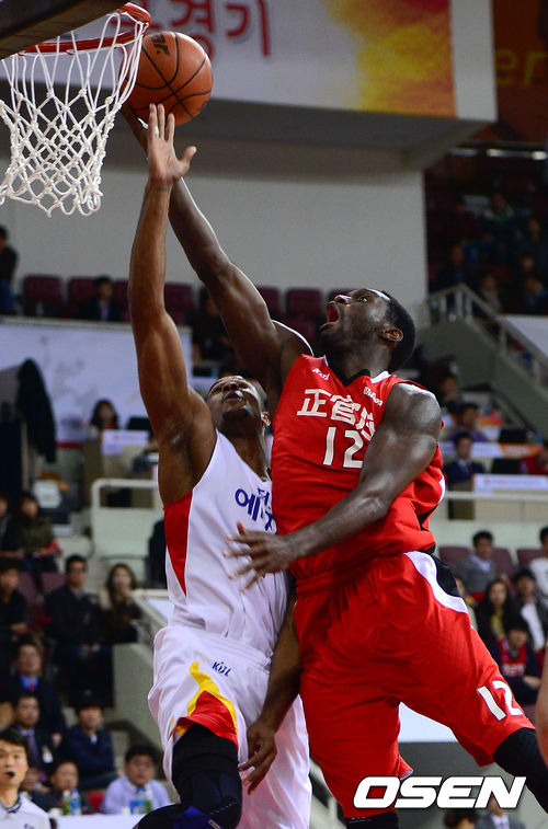 22일 오후 안양 실내체육관에서 열린 'KB 국민카드 2012-2013 프로농구' 6강 플레이오프 1차전 안양 KGC와 고양 오리온스의 경기 2쿼터 KGC 파틸로의 레이업슛을 시도하고 있다.