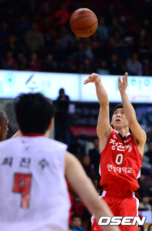 22일 오후 안양 실내체육관에서 열린 'KB 국민카드 2012-2013 프로농구' 6강 플레이오프 1차전 안양 KGC와 고양 오리온스의 경기 2쿼터 KGC 김윤태가 점프슛을 시도하고 있다.