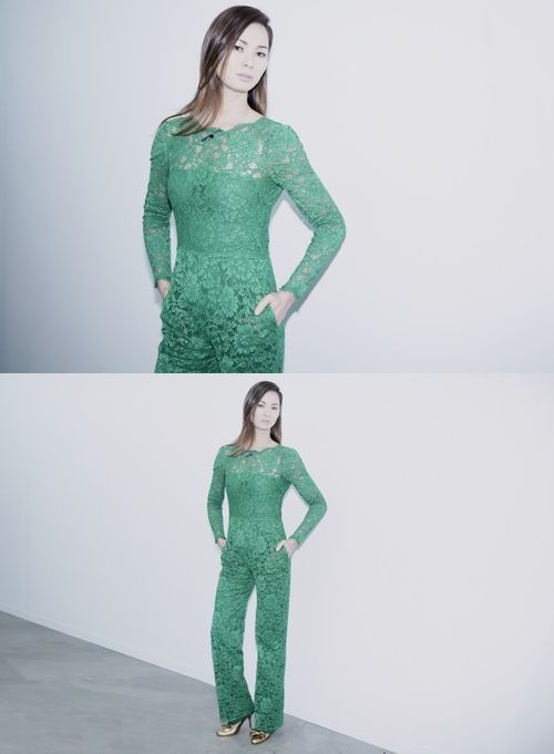 온스타일이 '프런코 올스타' MC 이소라의 3화 런웨이 패션을 공식 페이스북 계정(facebook.com/onstyletv)을 통해 공개했다. 속이 비치는 레이스 소재의 의상으로 봄을 알리는 상큼한 초록색 컬러가 눈에 띈다. 특히 위아래가 연결된 ‘보디 수트’ 디자인이라 이소라의 무결점 바디라인이 고스란히 드러나며 더욱 이목을 집중시키고 있다.
