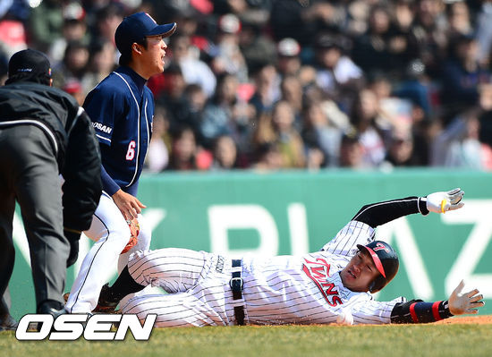 9회말 LG의 마지막 공격. 경기를 매조지러 나온 김강률을 상대로 나온 정주현과 대타 이병규의 볼넷 등으로 1사 1,2루 기회를 만든 LG는 김용의의 1루 땅볼로 2사 2,3루를 맞이했다. 안타 유무에 따라 승패가 바뀔 수 있던 순간. 그러나 문선재의 중견수 뜬공과 함께 경기가 끝이 났다.