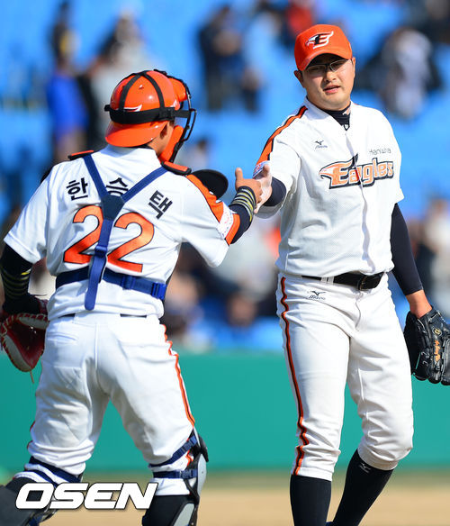 한화는 상대 실책과 밀어내기 볼넷을 묶어 7회까지 2-1로 근소하게 앞서갔다. 롯데는 8회 대타로 등장한 김문호가 우익수 방면 깊숙한 타구를 날렸는데 워닝트랙 바로 앞에서 잡혔다. 이어 강민호의 큼지막한 타구는 중견수가 펜스에 바로 붙어서 잡을만큼 큰 타구였다.