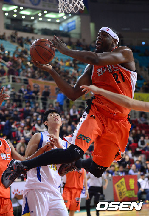 23일 오후 인천삼산월드체육관에서 열린 'KB 국민카드 2012-2013 프로농구' 6강 플레이오프 1차전 인천 전자랜드와 서울 삼성의 경기 1쿼터 전자랜드 카스토가 골밑슛을 시도하고 있다.