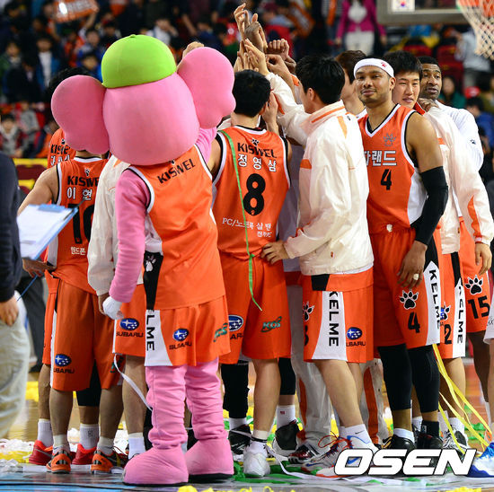경기 종료 후 승리를 거둔 전자랜드 선수들이 기뻐하고 있다. / youngrae@osen.co.kr