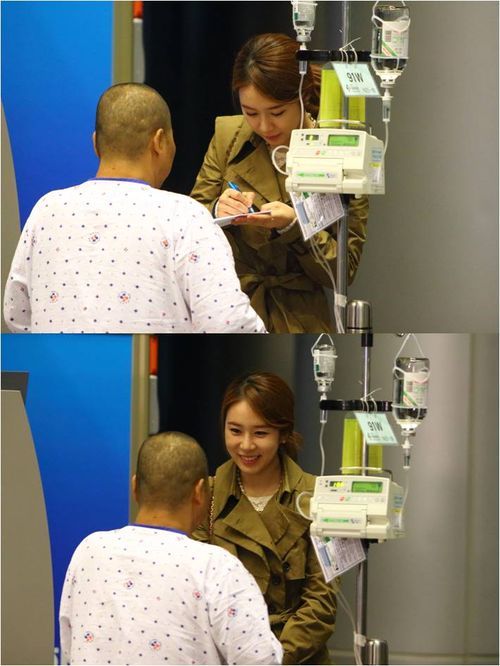 유인나는 공손한 사인과 입가에 만연한 미소로 팬의 쾌유를 빌었다. 평소 쾌활하고 밝은 모습으로 촬영장을 활기차게 하는 그녀의 미소는 환우팬들에겐 반가운 손님이었으리라 생각된다.