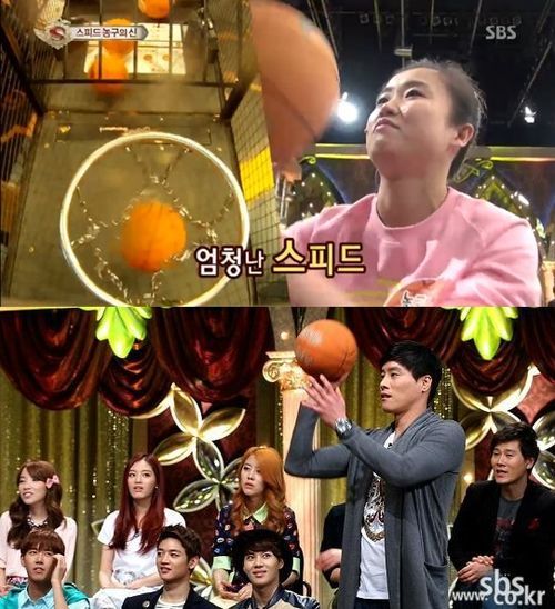 이 밖에도 이날 세 사람은 전 국가대표 농구선수 우지원과 함께 농구게임을 대결을 펼치며 스피드를 뽐냈다.