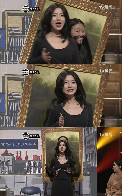 안영미는 지난 23일 방송된 tvN 예능 프로그램 '코미디 빅리그' 코너 '세 여인들'에서 화려한 손놀림으로 가슴 부위를 격하게 움직이는 댄스 동작을 선보이며 웃음바다를 만들었다.