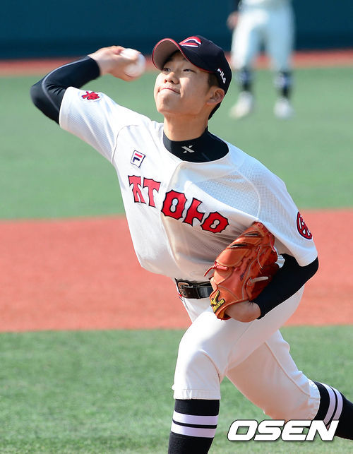 24일 오전 서울 구의구장에서 열린 '2013 고교야구 주말리그' 중앙고와 청원고의 경기 4회말 교체된 조규연이 역투하고 있다.