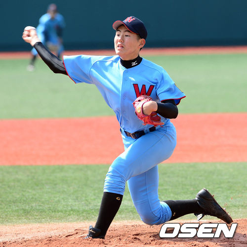 24일 오전 서울 구의구장에서 열린 '2013 고교야구 주말리그' 배재고와 휘문고의 경기 휘문고 선발 김성민이 역투하고 있다.