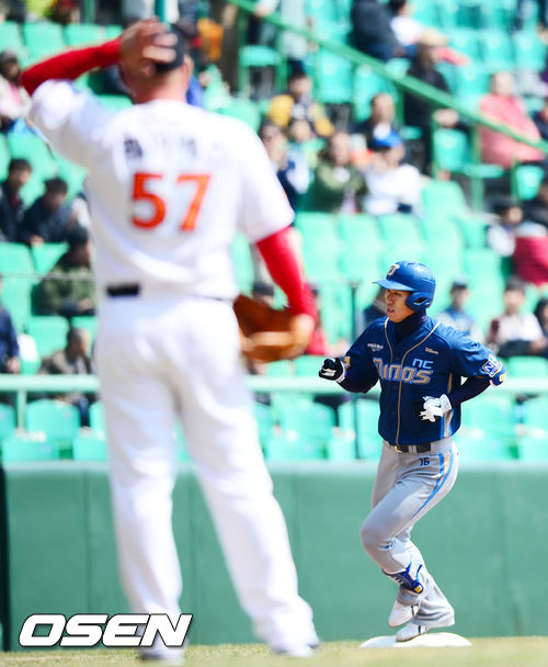 2회초 무사 주자 1루 NC 모창민이 좌중월 역전 투런 홈런을 날린 후 그라운드를 돌고 있다.
