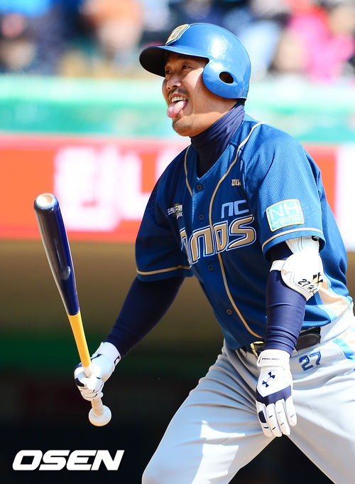 3회초 1사 주자 만루 NC 이호준이 헛스윙을 한 후 아쉬워하고 있다.